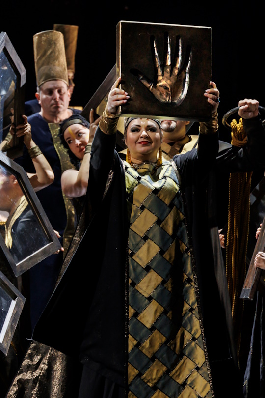 Slaves, commanders, and kings — all are equal in the face of love, jealousy, a longing for home, or a thirst for victory. Aida crystallizes vast musical riches and white-hot passions. Written for a theatre in Cairo to celebrate the opening of the Suez Canal, this opera, based on a story from the time of the pharaohs, is recognized as an unqualified masterpiece. The Mikhailovsky Theatre’s production defers to Verdi’s original score. The stage setting, metaphorical and elegant, highlights the principal characters’ profound emotions and serves as an exquisite background for the music of a genius. Synopsis