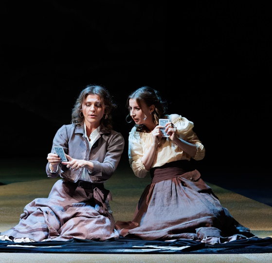The smugglers camp in the mountains. José is exhausted as Carmen has grown cold to him. Frasquita and Mercédès are telling fortunes by cards and Carmen joins them. Her friends expect wealth and love, but she herself sees death in her future. Escamillo suddenly appears. In a rage, José attacks the bullfighter with a knife, but Carmen stops the fight. Micaëla appears to persuade José to return to a peaceful life. Carmen scornfully says that the girl is right and this is no place for him here. José does not want to go, but Micaëla tells him about his mother’s fatal illness. He leaves to bid farewell to the dying woman.