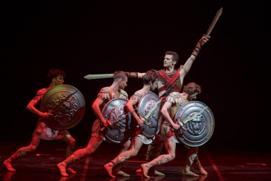 Imperial Rome, with its magnificent processions, orgies, and gladiatorial combats, provides a spectacular backdrop for this dramatic story of the fight for human dignity and freedom. The gladiators’ revolt is doomed to failure, but that does nothing to reduce the tension in the auditorium since in every scene, the characters give a full display of all the qualities of human nature in the face of brutal retribution.