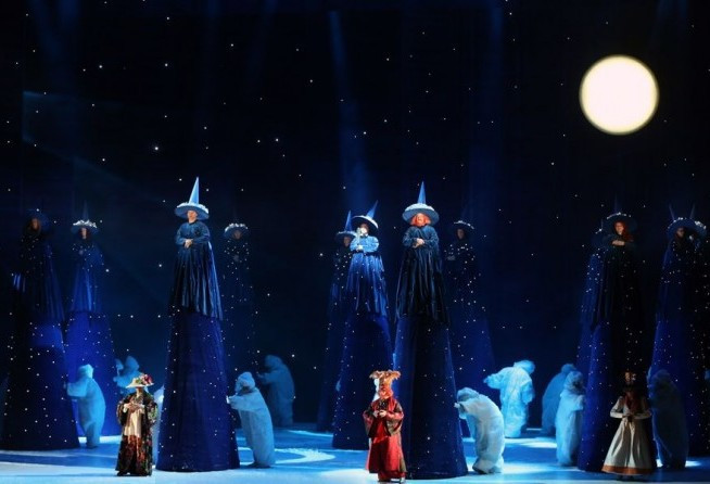 Part I The Stepmother’s hut. The Villain – the Stepmother’s own mother – is relating what she has dreamed of: if one believes in tradition then a dream before New Year will come to fruition in life. The Stepmother recalls another tradition: on 31 December the hut must be well heated. She sends her stepdaughter, the Grubby Child, to collect kindling. The forest. The Grubby Child meets the imperial woodcutter. He says that today it is best not to go into the forest: here all of the Twelve Months assemble and the light from their fire may make you blind and turn you into stone forever. The Brother-Months appear in the glade. The palace. The Great Chancellor presents the Empress with the order of events for the New Year Ball. The Empress is dissatisfied: at the ball there should be the sweet fragrance of her favourite woodland violets, but in the glasshouses all the flowers have perished from the cold. The Empress issues a decree: whoever delivers fresh violets to the palace will receive a bag of gold. The Stepmother’s hut. The Villain and the Stepmother are already dreaming of spending the Empress’ gold. They send the Grubby Child out to search for the flowers in the snowy forest. The forest. The Grubby Child is exhausted and falls asleep. The Months decide to help her: December gives up his seat at the fire to April, spring comes and the glade is filled with violets.