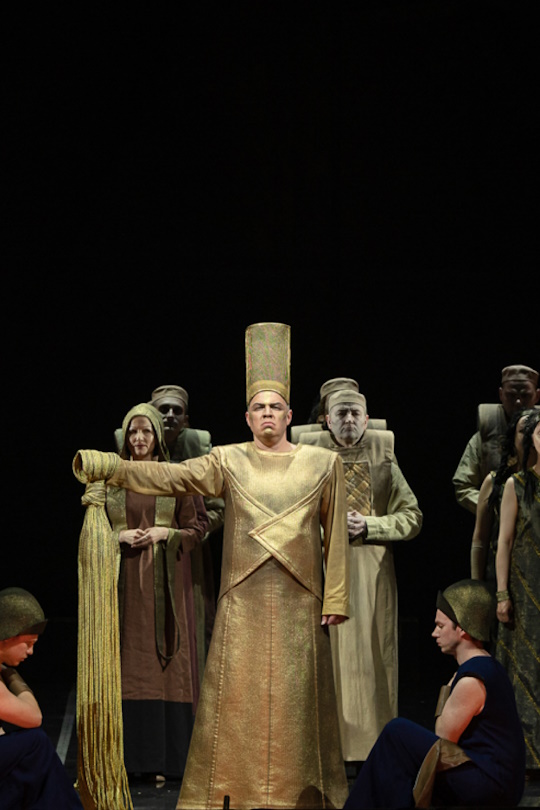 Slaves, commanders, and kings — all are equal in the face of love, jealousy, a longing for home, or a thirst for victory. Aida crystallizes vast musical riches and white-hot passions. Written for a theatre in Cairo to celebrate the opening of the Suez Canal, this opera, based on a story from the time of the pharaohs, is recognized as an unqualified masterpiece. The Mikhailovsky Theatre’s production defers to Verdi’s original score. The stage setting, metaphorical and elegant, highlights the principal characters’ profound emotions and serves as an exquisite background for the music of a genius. Synopsis