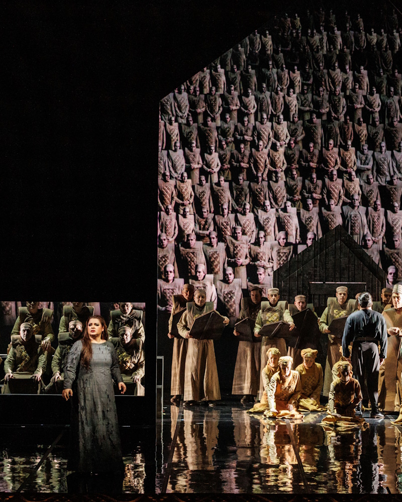 Amneris waits for the triumphant return of Radamès. By falsely tell-ing Aida that Radamès has died in the battle, she tricks her into pro-fessing her love for him. The king and Amneris observe the celebrations and crown Radamès with a victor’s wreath. Captured Ethiopians are led in. Among them is Amonasro, Aida’s father, who signals his daughter not to reveal his identity as king. Radamès asks the king to set the prisoners free. The king grants his request but keeps Amonasro and Aida in custo-dy. The king declares that as a victor’s reward, Radamès will have Amneris’s hand in marriage.