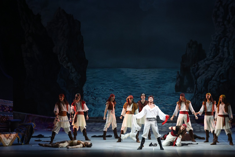 We invite you to embark on an incredible journey through exotic lands, breathe in the spicy scents of an eastern bazaar, watch as the pirates fight, and get a glimpse of Seyd Pasha’s harem. In this vibrant ballet, swashbuckling adventures are interwoven with a love story, and colourful character dances alternate with classical ensembles and pas de deux.