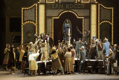 Arnaud Bernard's production transposes the action of the opera's plot from a village in Sicily to the Italian Quarter of New York in the 1920s. The stage director believes that Italian immigrants brought with them to the New World the same earthy and archaic understanding of life and death, faith and honour and love and destiny that were commonly accepted in Sicily in the mid 19th century – the time when the story of Cavalleria rusticana unfolds, the novella serving as the basis for the libretto. If love before marriage can excommunicate a sinner from communion, if treachery leads to a knife-fight between rivals, then an insult may be washed away with blood, piety is proper, vengeance has deep roots and respect for one's mother becomes true "mammismo". In the 1890s, the portrayal of these powerful emotions verging on naturalism found an unexpected and passionate response with audiences and then, immediately following its premiere, the young Pietro Mascagni's first opera was staged at dozens of theatres in Europe and America. It paved the way for an entire movement in Italian opera which was given the name "verismo" (from the Italian "vero" meaning "truth"). By the close of the century verismo had died out, though its ideas were reflected in the operas of Giacomo Puccini and Francesco Cilea among other composers and, later on, in Italian cinema.