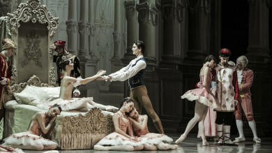 The Lilac Fairy alleviates the prophecy of Carabosse : Princess Aurora shall not die but fall