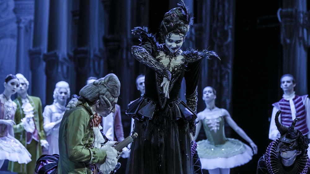 Frightened servants herald the arrival of the evil Fairy Carabosse, who hasn`t been invited by