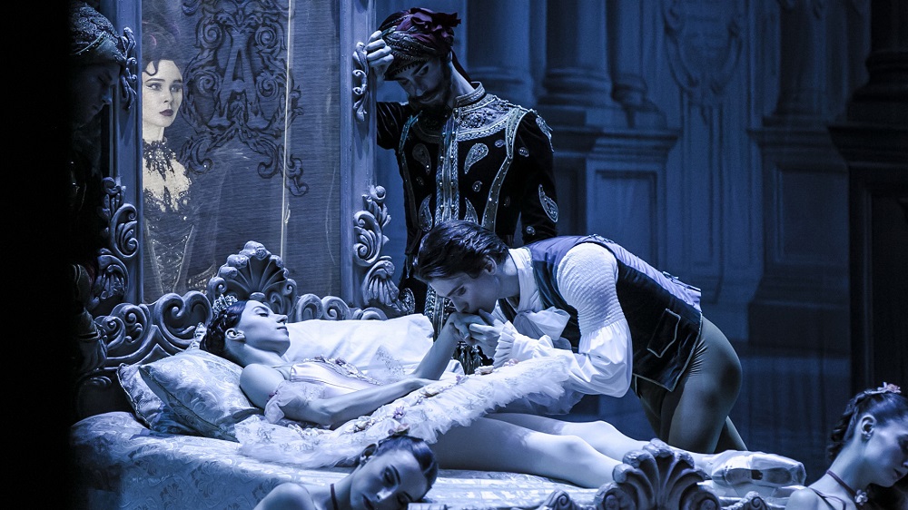 Prince Desire finds Princess Aurora. When he kisses the sleeping beauty, Aurora awakes.