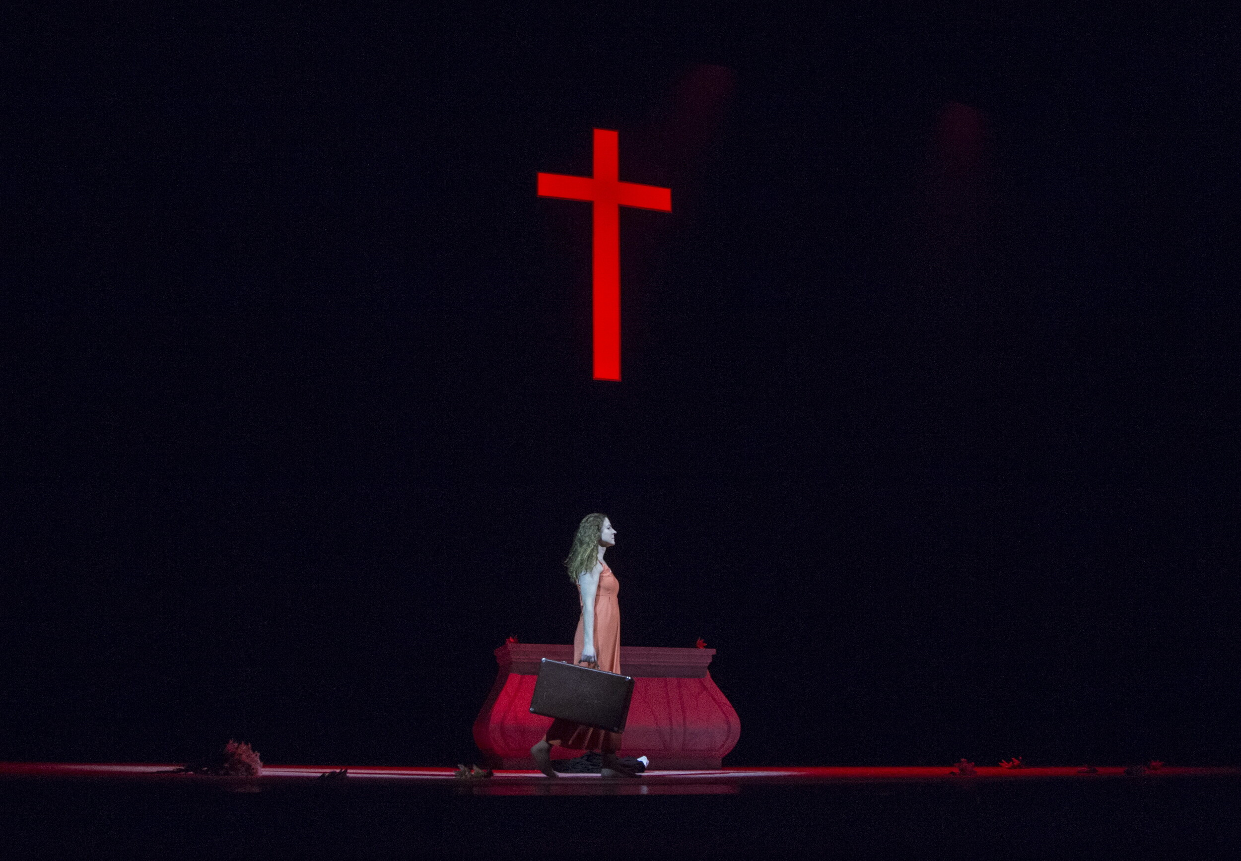 The Nursing Sister rushes in, much distressed: a nun has been stung by a wasp and is in great pain. Angelica swiftly prepares a herbal remedy. The Nursing Sister leaves, praising Angelica’s skill. Two Alms Sisters appear. They mention that a magnificent carriage with a coat-of-arms has arrived at the convent. The Abbess enters and summons Sister Angelica into the hall. Some important visitor has arrived. Before her, Sister Angelica sees her aunt the Princess. The latter exudes coolness and severity. She has come to demand that her niece sign away her share of the family heritage in favour of a younger sister. Her fiancé is willing to overlook the dishonour Angelica brought upon the noble household’s reputation. She must pay, in part at least, for her actions. Unmoved by Angelica’s protests and desperate enquiries about her son, the Princess brutally informs her that her son died two years previously.